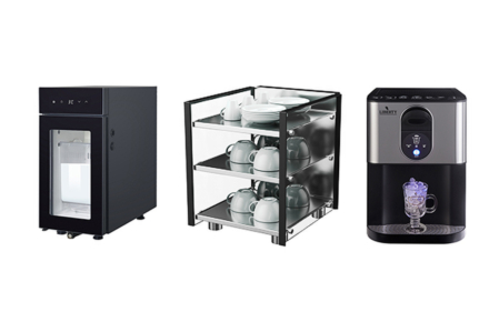 Da contorno alle macchine da caffè per una gamma di accessori completa, frigorifero per latte, scalda tazze e macchina del ghiaccio a servizio immediato dei professionisti